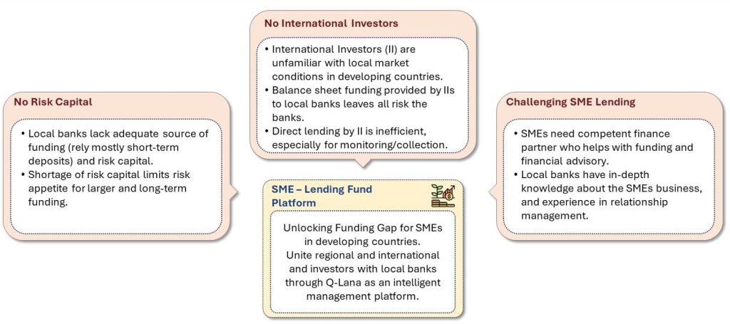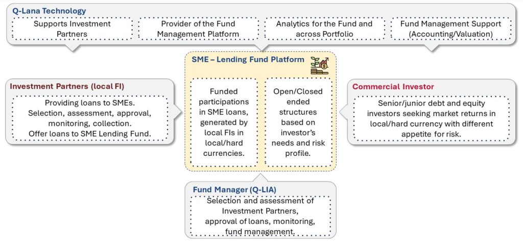 Q-Lana introduces the SME Lending Fund Platform, designed to address the unique challenges of SME lending by harnessing the strengths of local banks and investors. This innovative platform combines the deep expertise of local financial institutions with the resources of investors to create a powerful solution for SME financing.